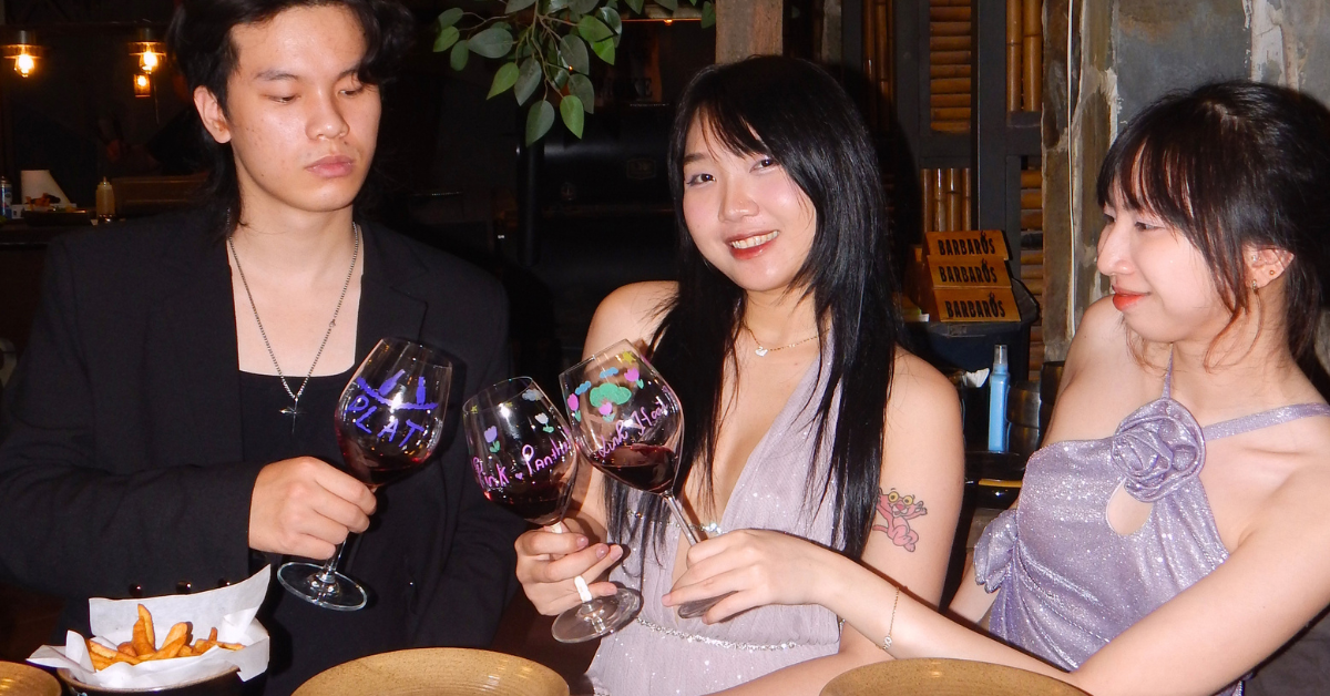 - Creative glass drawing: This is the customer-favorite! We provide colorful pens and wine glasses for you and your friends to doodle, write wishes, or unleash your inner artist right on your drinks. It’s the perfect personalized touch for your party photos.